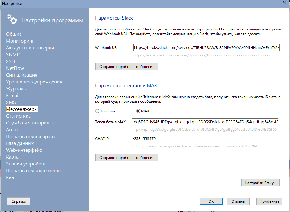 - Добавлена возможность отправки оповещений программы в мессенджер MAX.