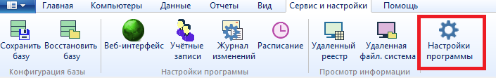- В основной программе перейдите на вкладку «Сервис и настройки» и нажмите «Настройки программы».