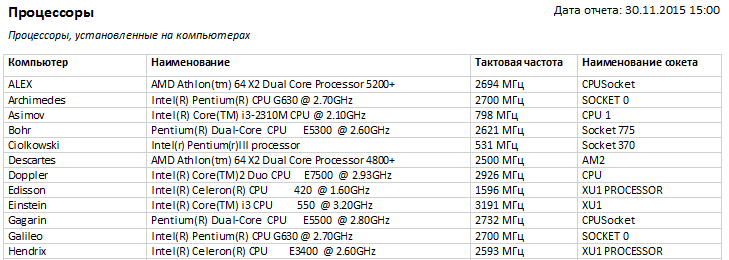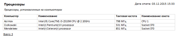 С помощью фильтров можно не просто создать отчеты, но и найти слабые компьютеры, например, с маленькой тактовой частотой процессора.